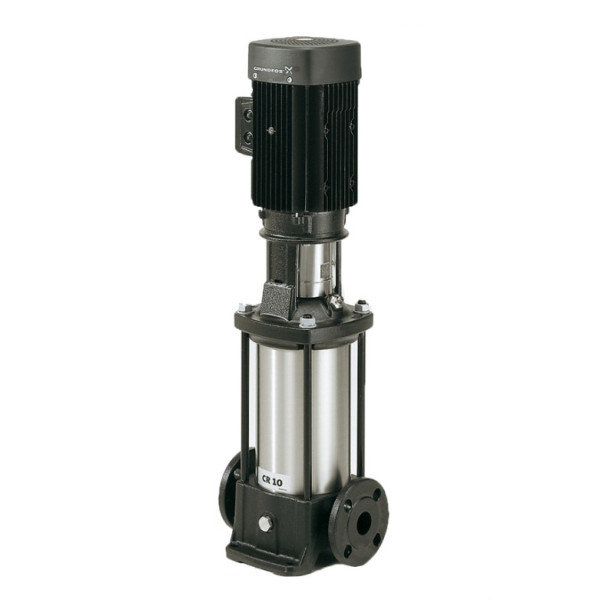 Насос многоступенчатый Grundfos CR 10-02 96500964 - представляет собой вертикальный многоступенчатый центробежный насос с нормальным всасыванием со стандартным электродвигателем фирмы Grundfos. Насос состоит из основания и головной части. Промежуточные камеры и цилиндрический кожух соединены между собой, а также с основанием и головной частью насоса при помощи стяжных болтов. В основании имеются соосно расположенные всасывающий и напорный патрубки (конструкция типа «ин-лайн»). Конструкция «ин-лайн» позволяет устанавливать насос на горизонтальном трубопроводе.