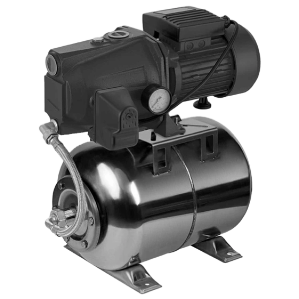 AUTO JET 80 L-50-S – насосная станция на базе поверхностного центробежного насоса JET L, оснащенная гидроаккумулятором 50 литров из нержавеющей стали, реле давления PM/5 и манометром. Максимальная высота всасывания – 8 метров.